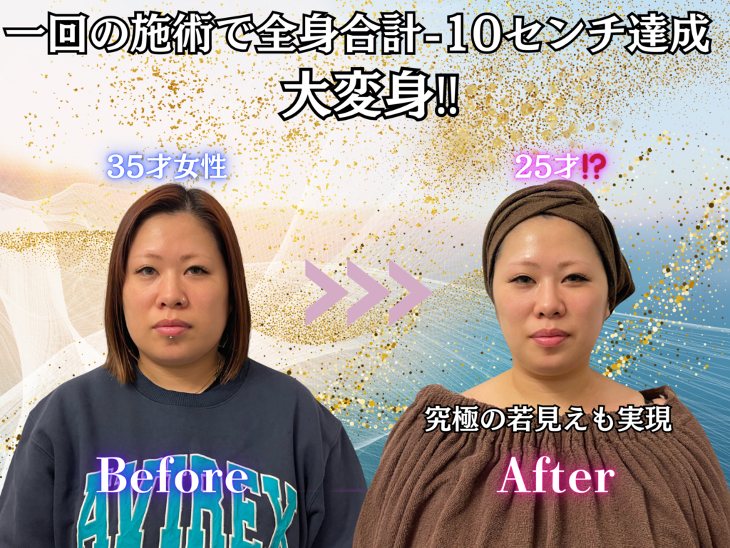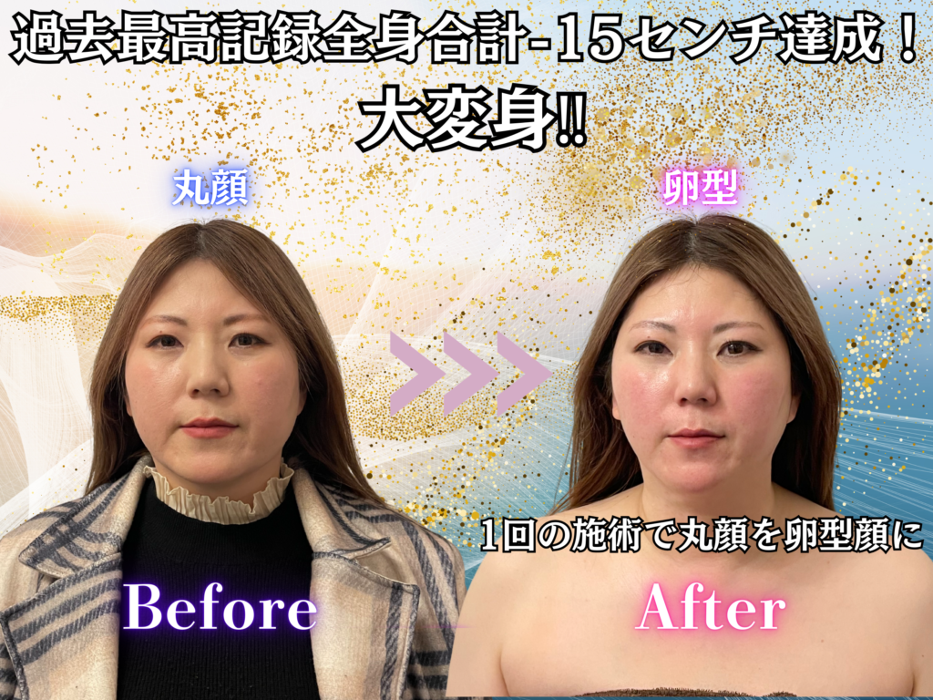 1度の施術で5回分の効果!!全身合計−48.5センチ達成(痩身コース)