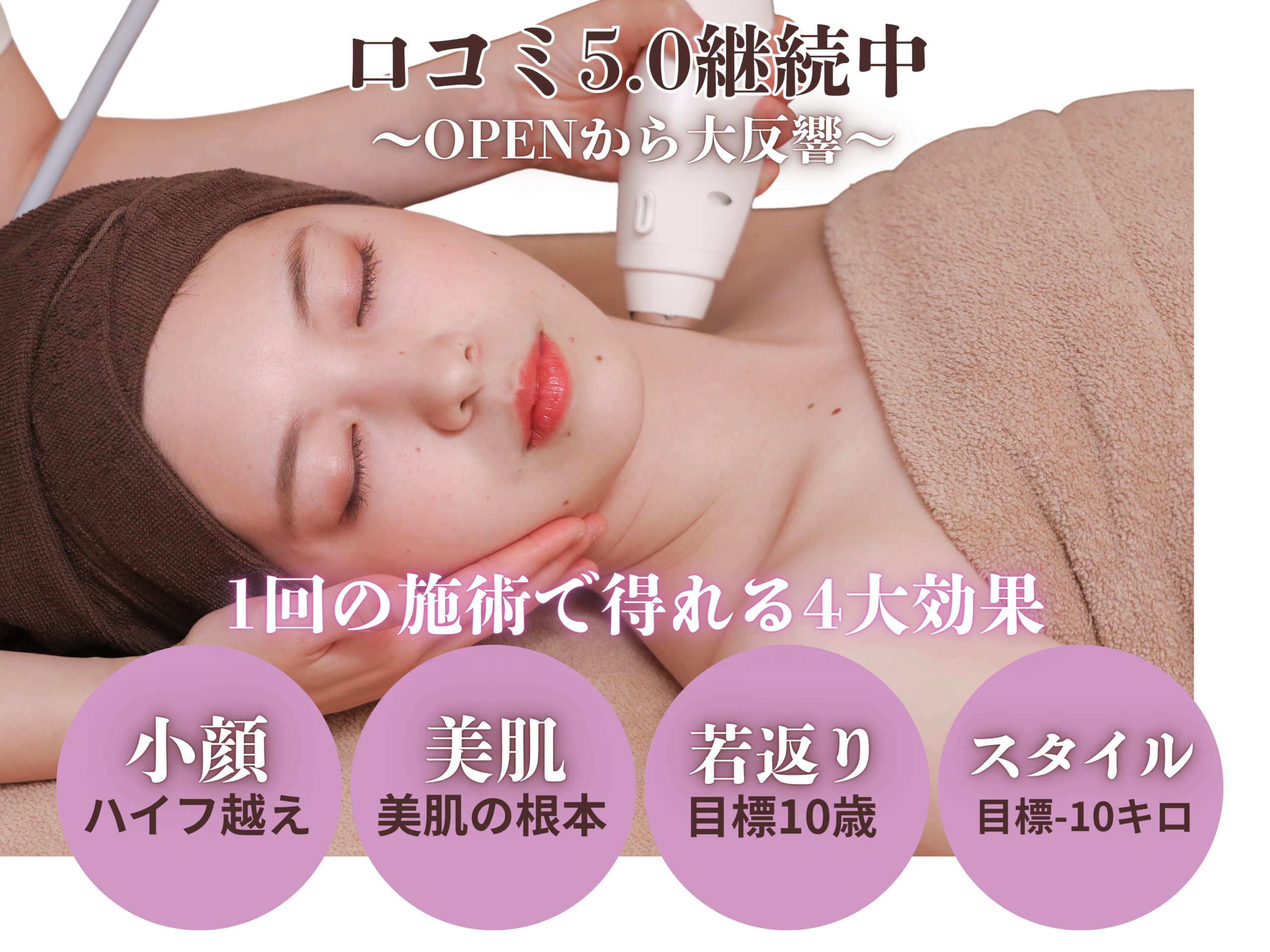 次世代最先端、ハイフをも超える新技術を搭載した最高峰マシンによる施術で、開店直後から圧倒的な反響を獲得。